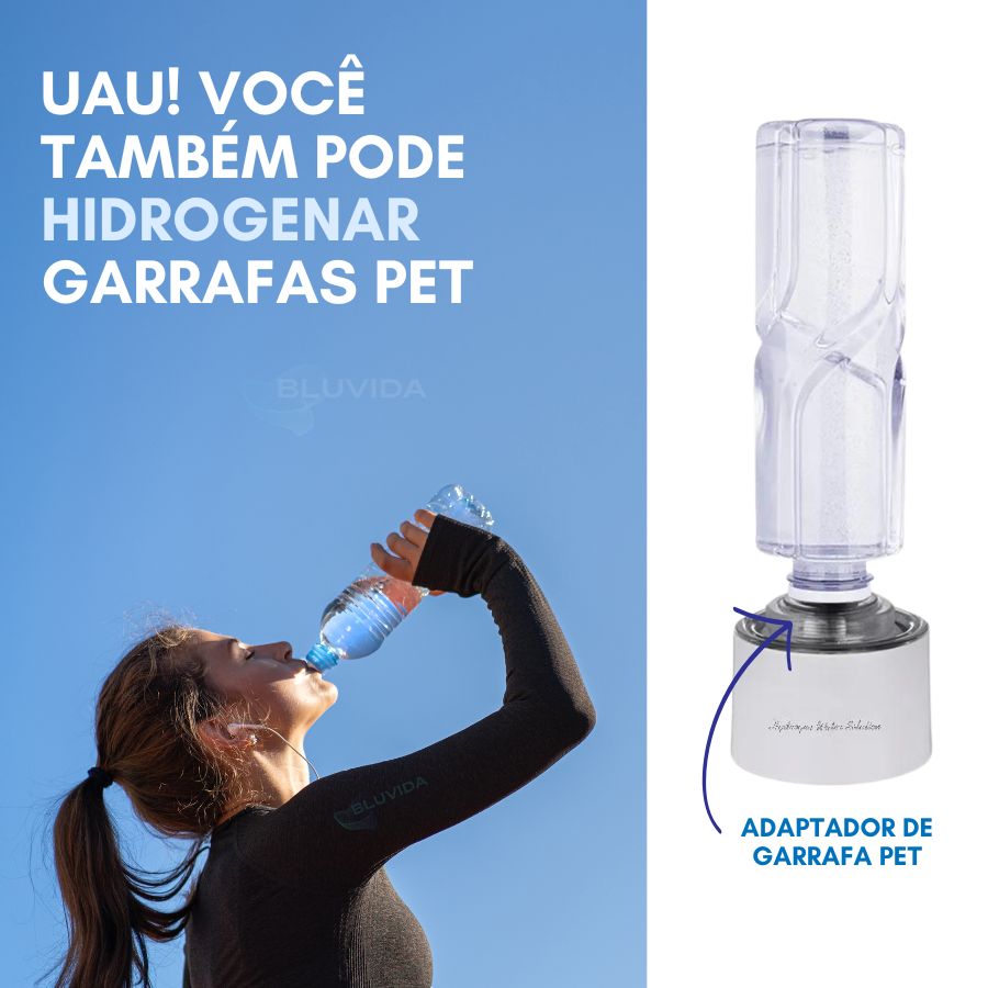 Vai fazer atividade física ou viajar e prefere garrafas PET para colocar na bolsa? Sem problemas! Basta hidrogenar sua água na garrafa PET com o adaptador que já vai incluso. (Você pode fazer isso em quantas garrafas desejar)
